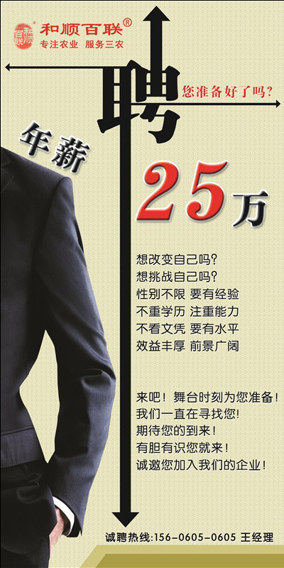 為了更好服務(wù)三農(nóng),將優(yōu)質(zhì)農(nóng)資推廣到千家萬戶,和順百聯(lián)(北京)農(nóng)業(yè)科技有限公司擬在全省建立鄉(xiāng)村級“終端技術(shù)”服務(wù)站?,F(xiàn)向全國誠聘各鄉(xiāng)村“終端技術(shù)服務(wù)站站長。